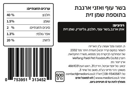 היה הראשון לכתוב סקירה “בלו וולף בשר עוף ואוזני ארנבת בציפוי שמן זית 500 גרם”