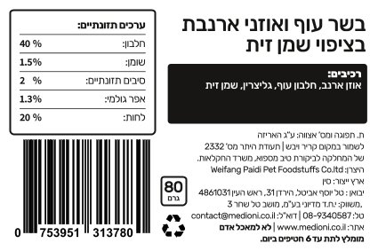 בלו וולף בשר עוף ואוזני ארנבת בציפוי שמן זית