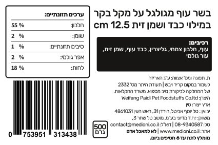 מומלץ לתת לכלב כחטיף בין הארוחות ו/או כחטיף אילוף או צ’ופר.
