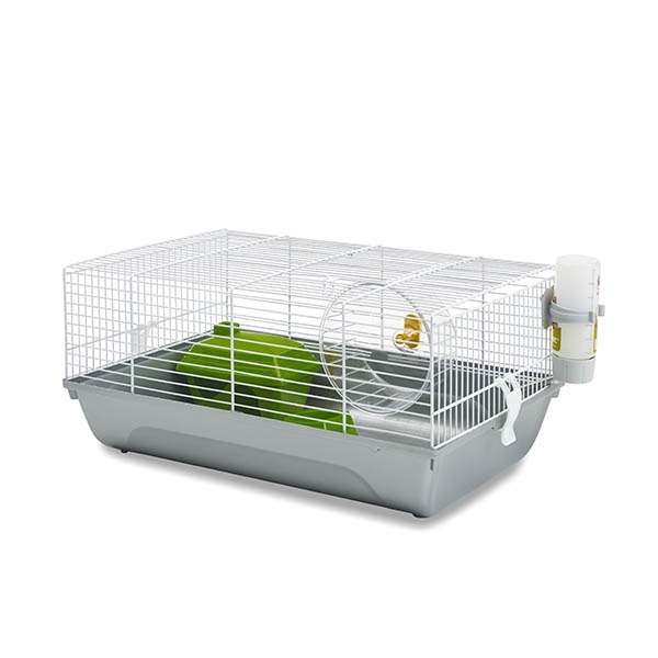 כלוב לאוגרים. מגיע מצוייד עם בית, קערת האכלה, גלגל מסתובב ובקבוק שתייה.